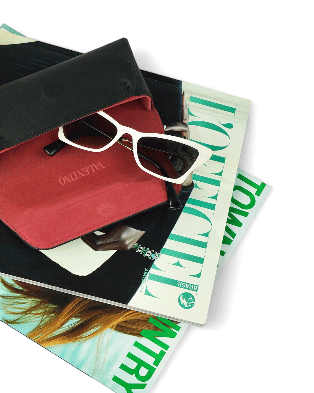 Com linhas angulosas e alma vintage, o Valentino Cat-Eye (modelo VA4062) é uma ode ao design escultural que atravessa gerações. Criado antes da atual direção criativa da maison, o modelo já antecipava o olhar moderno e ousado que hoje define a Valentino contemporânea.