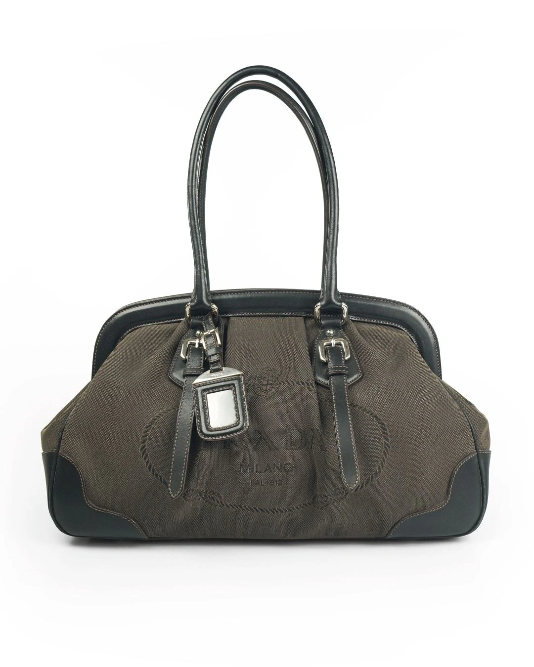 Bolsa Prada Canapa Logo Marrom e Preto