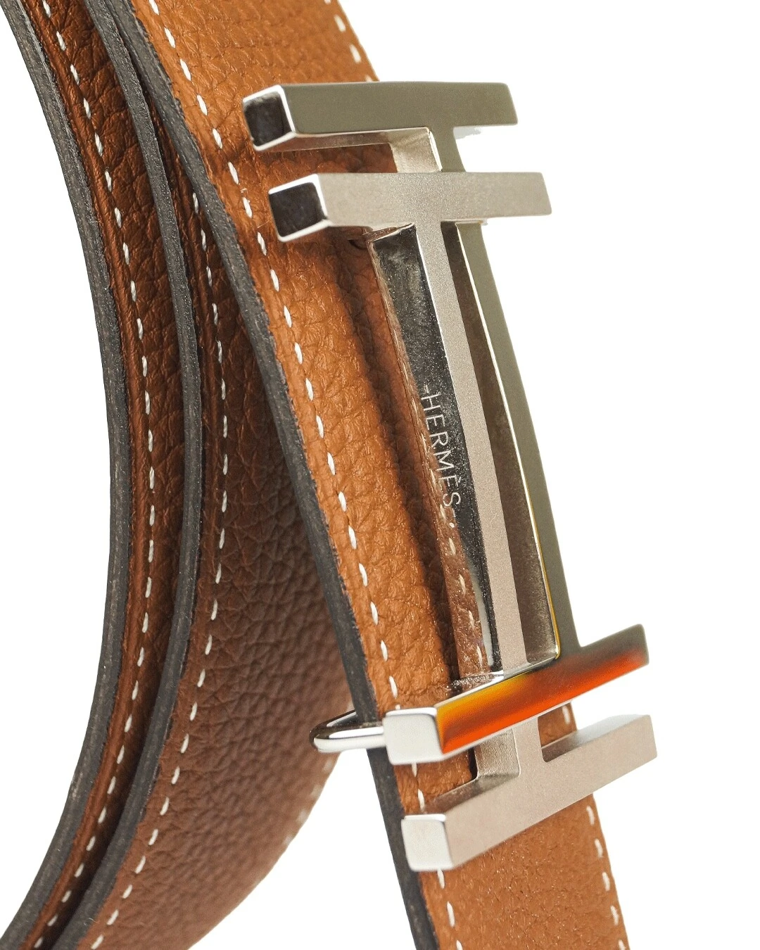 Cinto Hermès H Reversível – Couro Box e Togo Noir/Gold