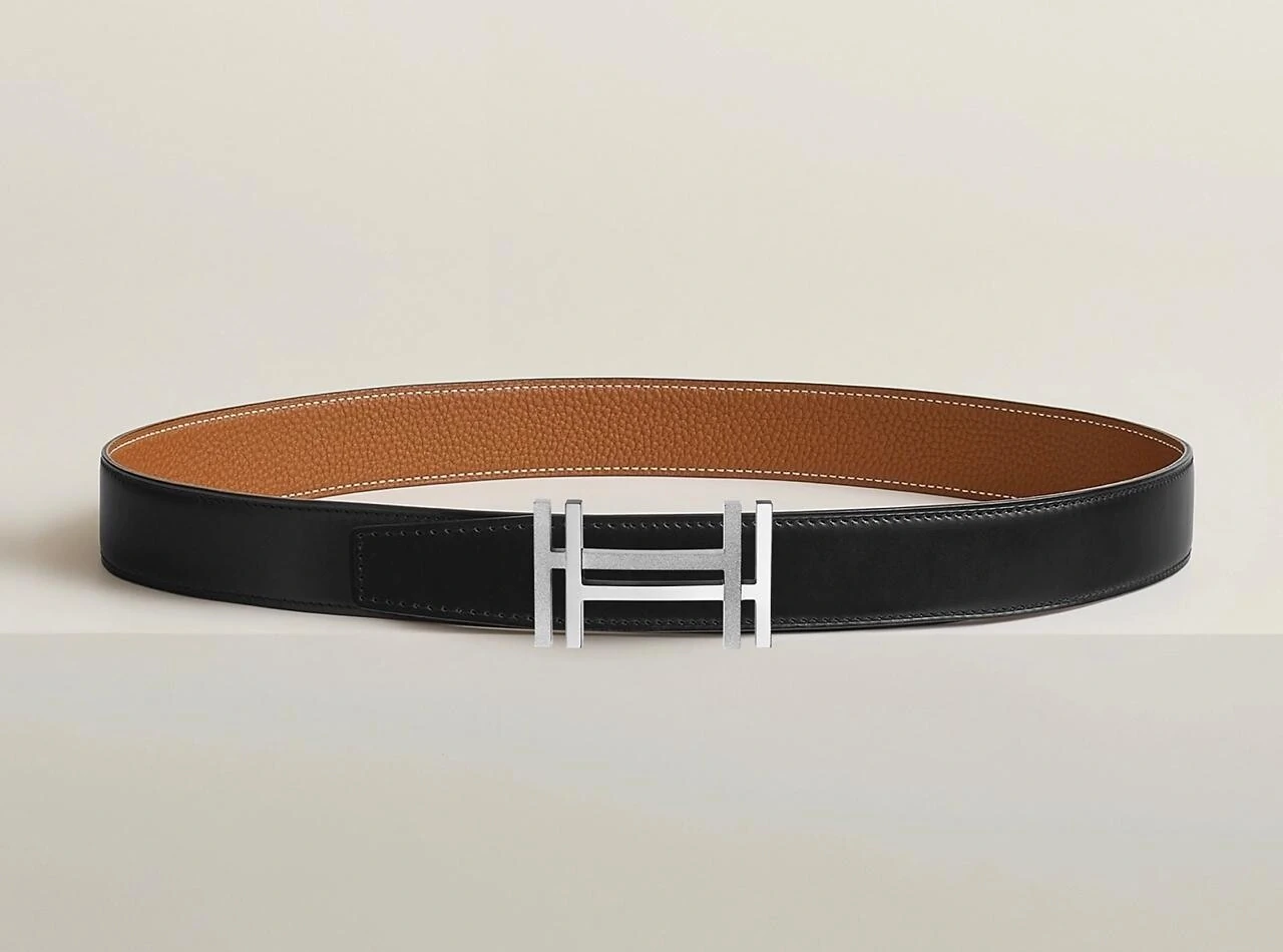 do outro, oferecendo versatilidade e sofisticação para diversas ocasiões. A icônica fivela "H" em metal prateado.