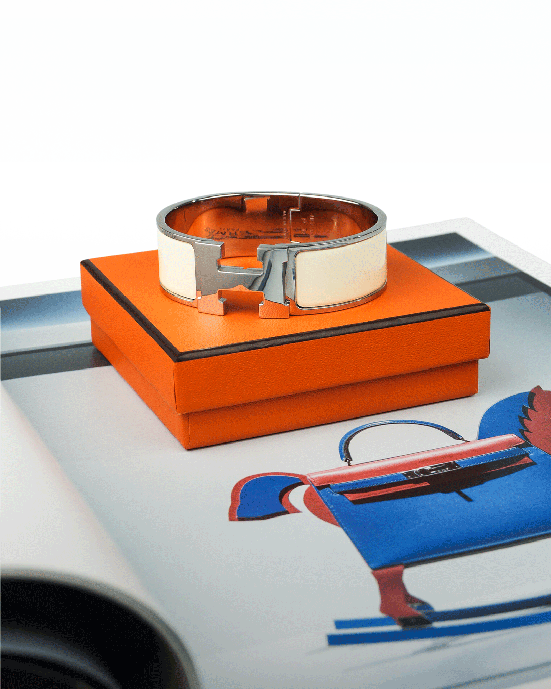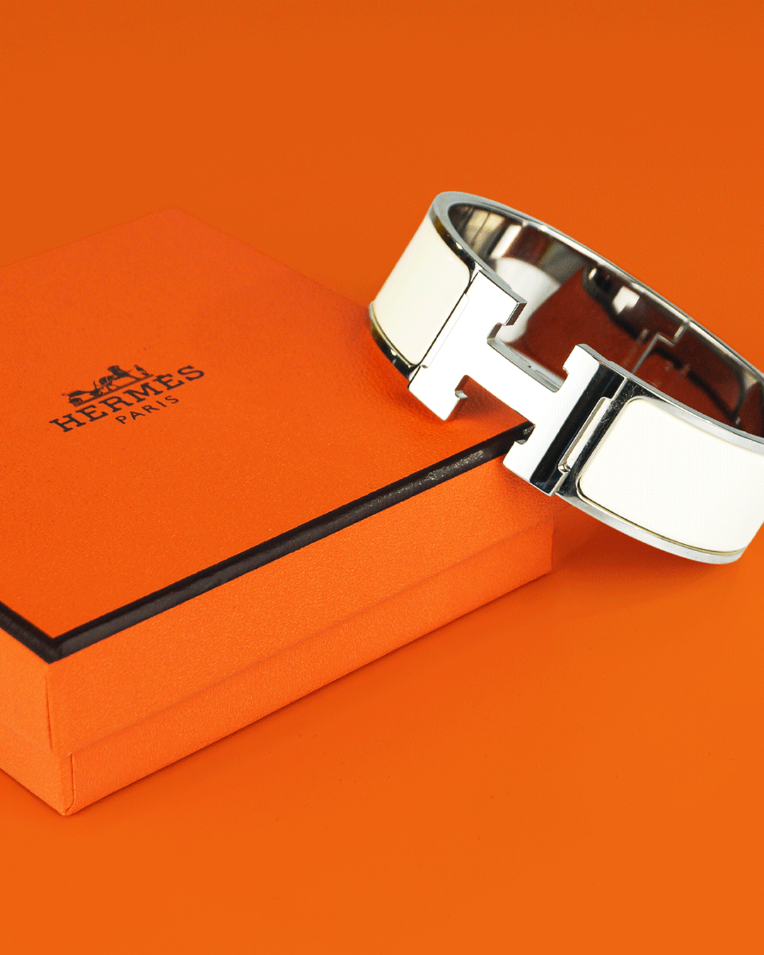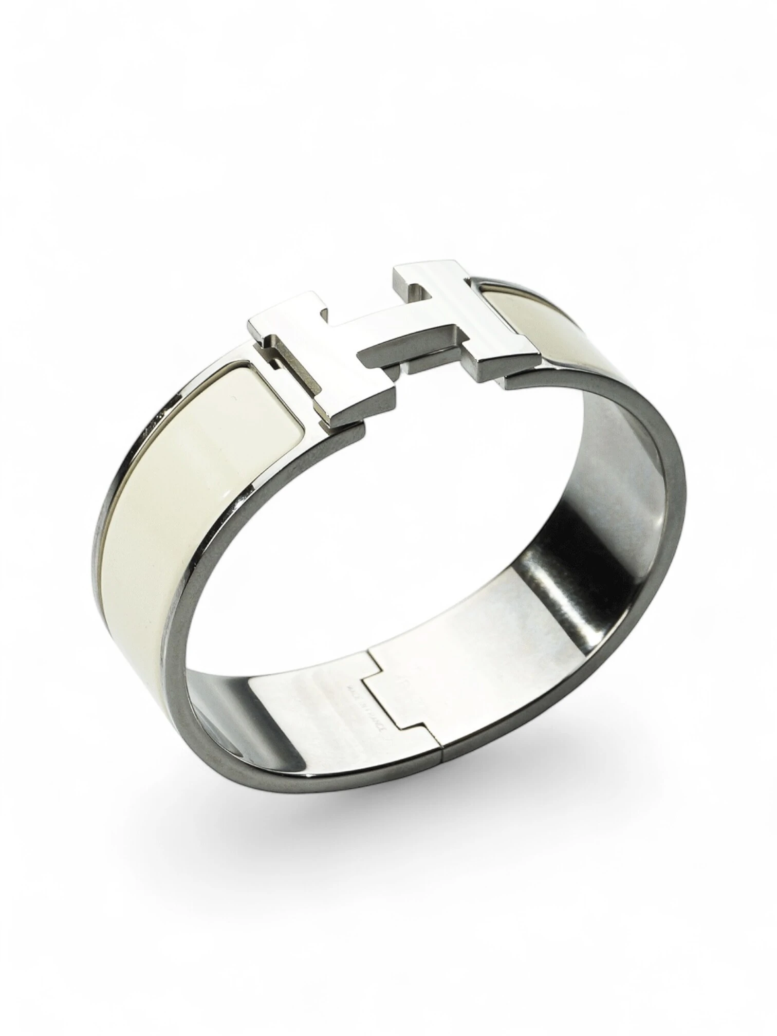 Bracelete Hermès Clic Clac H – Prata, Off White.