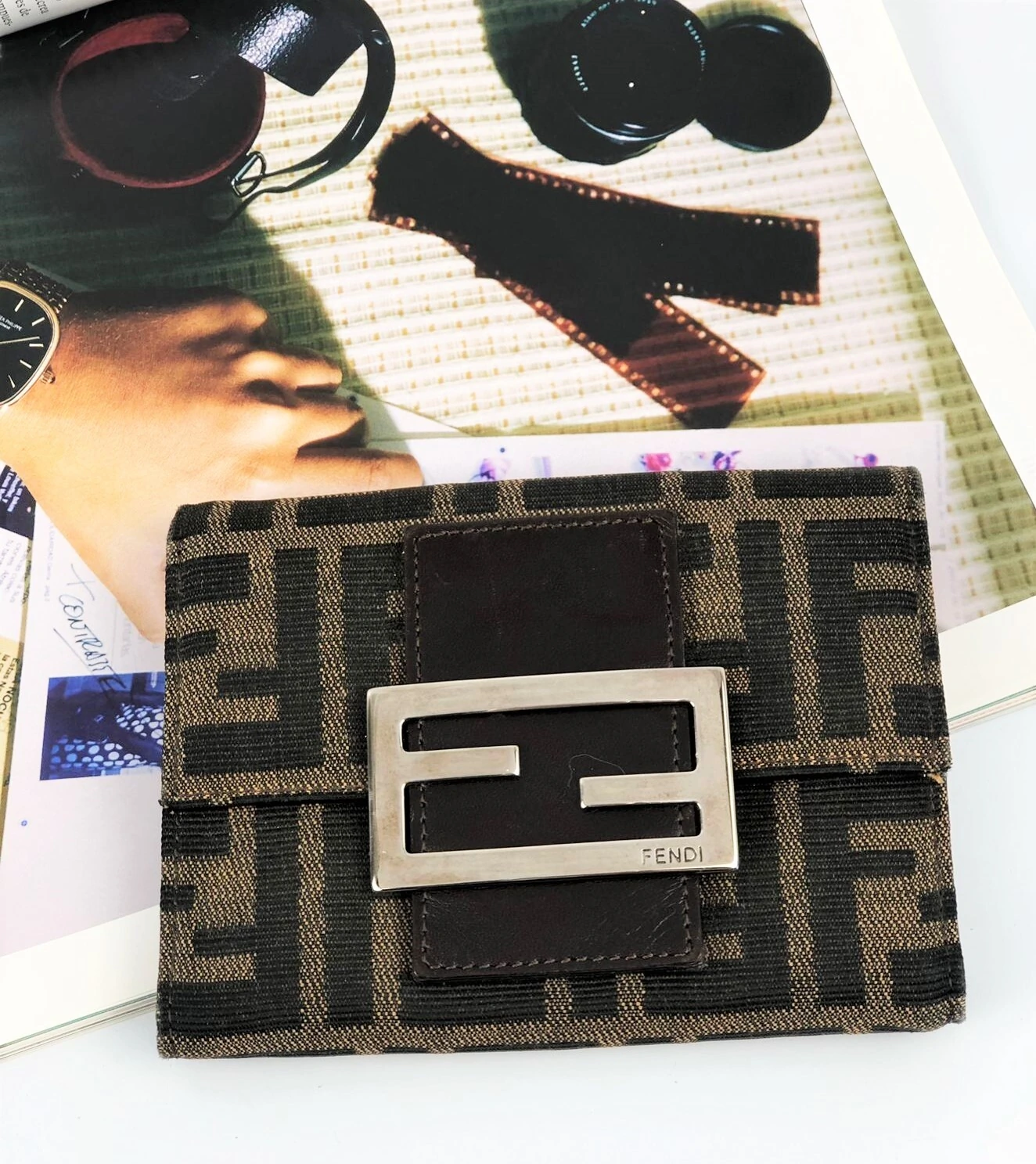 Chaveiro Fendi em Pele Branco e Preto