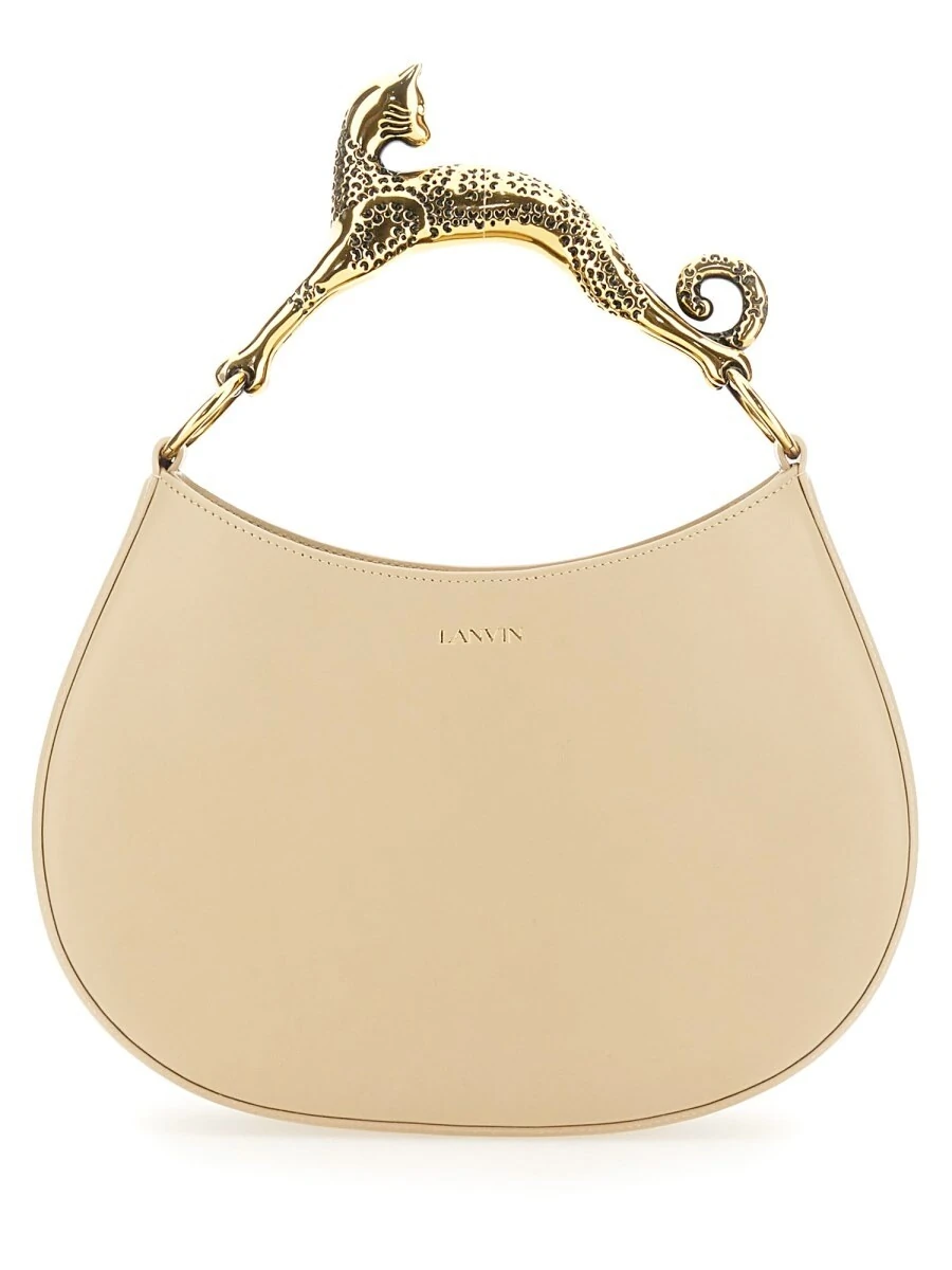 Detalhe de Destaque: Alça esculpida em forma de gato em metal ou couro moldado — assinatura artística da coleção Cat Bags Lanvin.