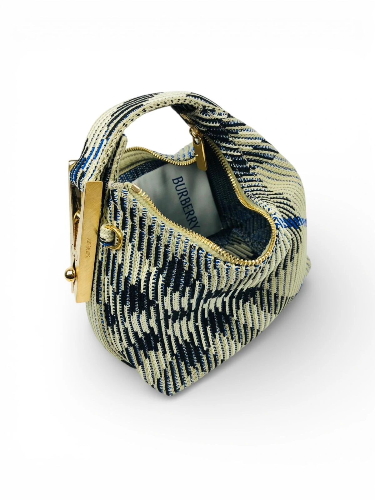 Feita com acabamento em poliamida premium com padronagem xadrez exclusiva, a mini duffle é leve, levemente estruturada e sem forro interno, valorizando o visual minimalista e moderno. O fechamento principal é por zíper, garantindo segurança, e o destaque fica por conta do detalhe único de fecho tipo “peg clip” gravado com o logo Burberry, que adiciona personalidade à peça.